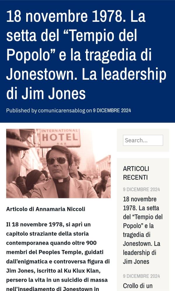 Il 18 novembre 1978, si aprì un capitolo straziante della storia contemporanea quando oltre 900 membri del Peoples Temple, guidati dall’enigmatica e controversa figura di Jim Jones, iscritto al Ku Klux Klan, persero la vita in un suicidio di massa nell’insediamento di Jonestown in Guyana. Questo tragico evento non solo sconvolse gli Stati Uniti, ma sollevò anche profondi interrogativi sulla natura delle sette, sulle dinamiche della leadership carismatica e sulla manipolazione psicologica impiegata da questi leader sui loro seguaci. Jim Jones, nato nel 1931, a Crete, nell’Indiana, negli Stati Uniti d’ America, emerse come un predicatore carismatico e attivista sociale, inizialmente sostenendo i diritti civili e la giustizia sociale prima di trasformarsi in una figura nota segnata da paranoia e autoritarismo.