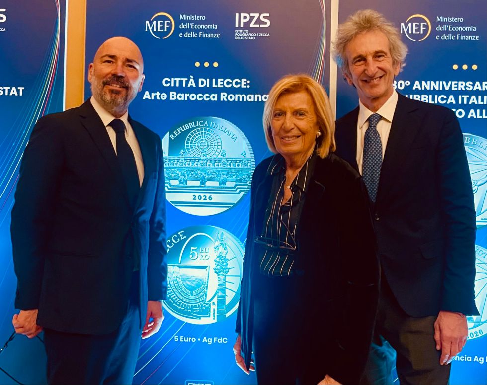E’ stata presentata a Roma, nella sede del Ministero dell’Economia e delle Finanze, la moneta dedicata a Lecce, che fa parte della collezione numismatica 2026 coniata dalla Zecca dello Stato. Sono intervenuti il ministro Giancarlo Giorgetti; il presidente dell’Istituto Poligrafico e Zecca dello Stato, Paolo Perrone; l’amministratore delegato Ipzs Michele Sciscioli. Presenti i ministri Alessandro Giuli (Cultura), Andrea Abodi (Sport e Giovani), Francesco Lollobrigida (Agricoltura), Matteo Salvini (Trasporti), Adolfo Urso (Made in Italy), il comandante generale della Guardia di Finanza, generale Andrea De Gennaro. Ha partecipato il sindaco di Lecce, Adriana Poli Bortone, insieme con l’architetto Alfredo Foresta che ha disegnato la moneta.